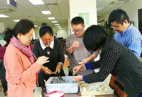 主页 » 教工之家 财税分工会举办“庆新年包饺子”活动 发布日期:2017-03-14 2017年1月12日,为迎接新年、丰富教职工生活,在分工会主席陈蕾、委员吴晖和张晓慧的组织下,财税分工会在教工食堂举办“庆新年包饺子”活动。全院教职工和退休教师30余名参加活动。 活动开始后,大家三五成群、自由组合,分工明确、配合默契,擀皮包陷、手法娴熟,包好的饺子风格各异、整齐精美,彰显各自家乡饺子的不同特色,活动现场既热闹又开心。 经过一个半小时的努力,大家终于围坐一起,品尝饺子的美味,交流协作的体会,分享劳动的成果,共享劳动的快乐,期许假期的放松,互送新年的祝福,气氛温暖祥和。