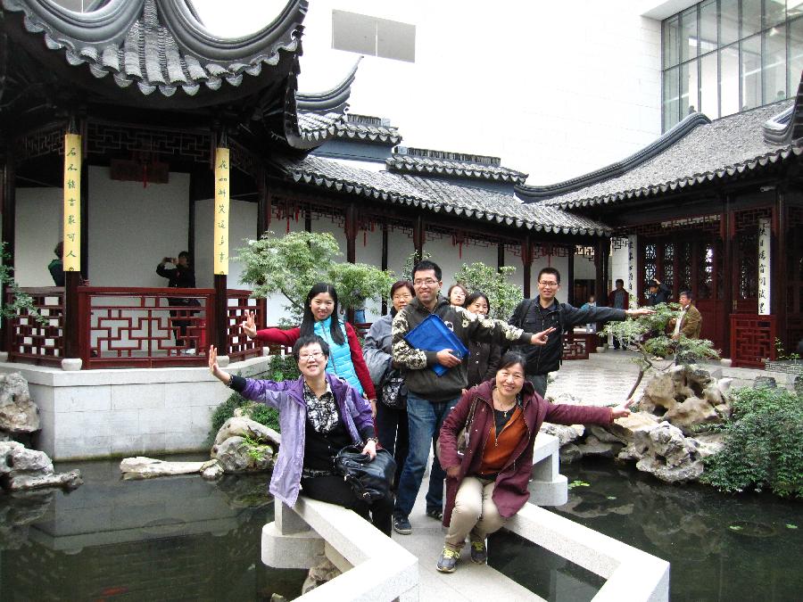 老师们唱着歌兴高采烈地首先来到“万园之园”的北京园。北京园皇家园林式的气宇轩昂让老师们赞叹不已。随后进入“忆江南”,“忆江南”展示了江南传统秀丽的人工山水园林及居住环境,让老师们有走进苏杭身临其境的幻觉。“闽园”引人进入山水环绕的闽南古厝,领略福建特有的客家文化。之后,老师们参观了园博会主展馆、室内展、永定塔和其它各园。一路上老师们不断地啧啧赞叹园博园的宏大和布局设计的精湛。