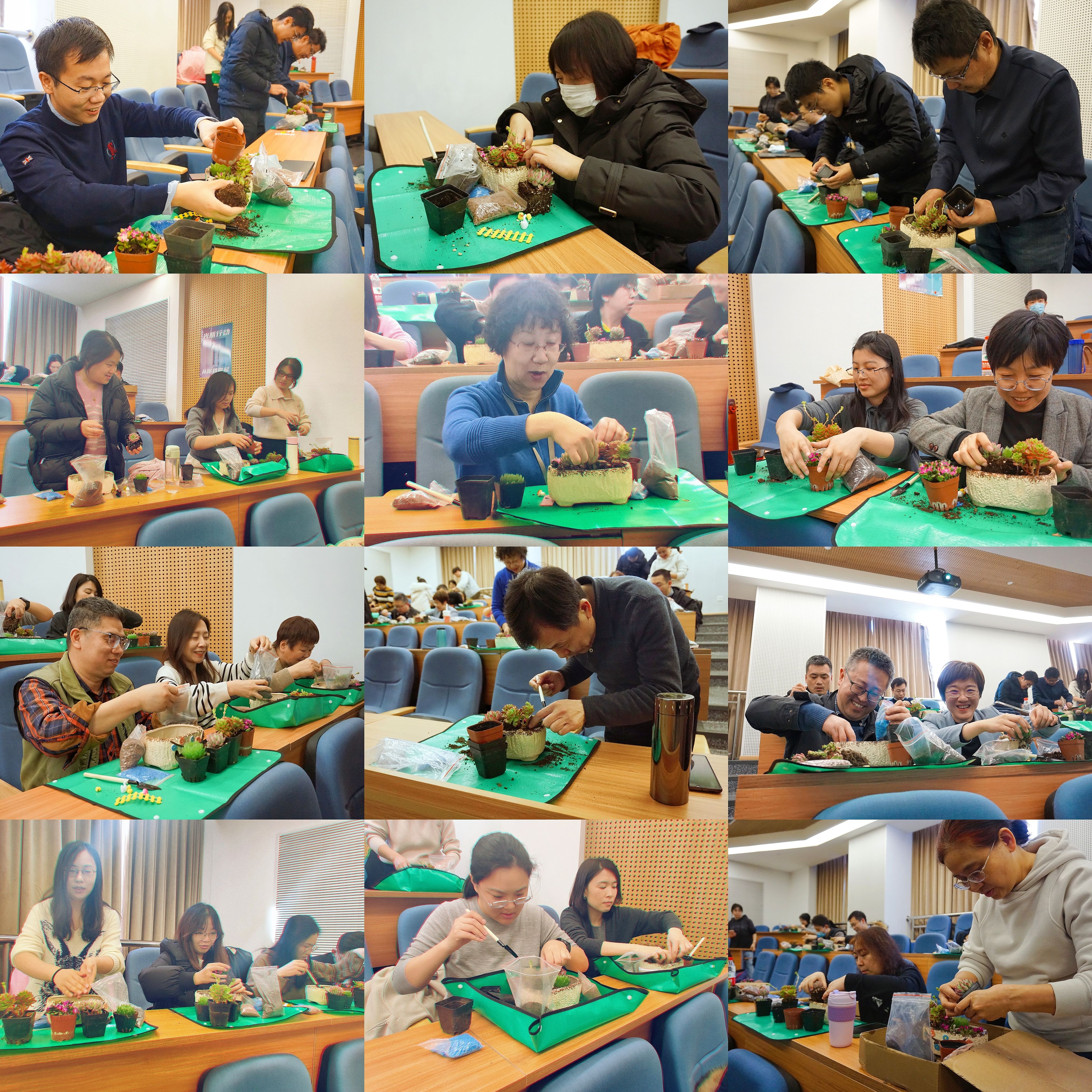 为丰富教职工的业余文化生活,增强教职工的幸福感和获得感,2024年3月6日,财税学院分工会举办“桌面微景观”手工活动。50余位教职工共聚一堂,利用多肉植物、彩石装饰品、多彩花盆等一系列材料,亲手打造微盆景艺术品。学院副院长、分工会主席陈蕾主持活动。