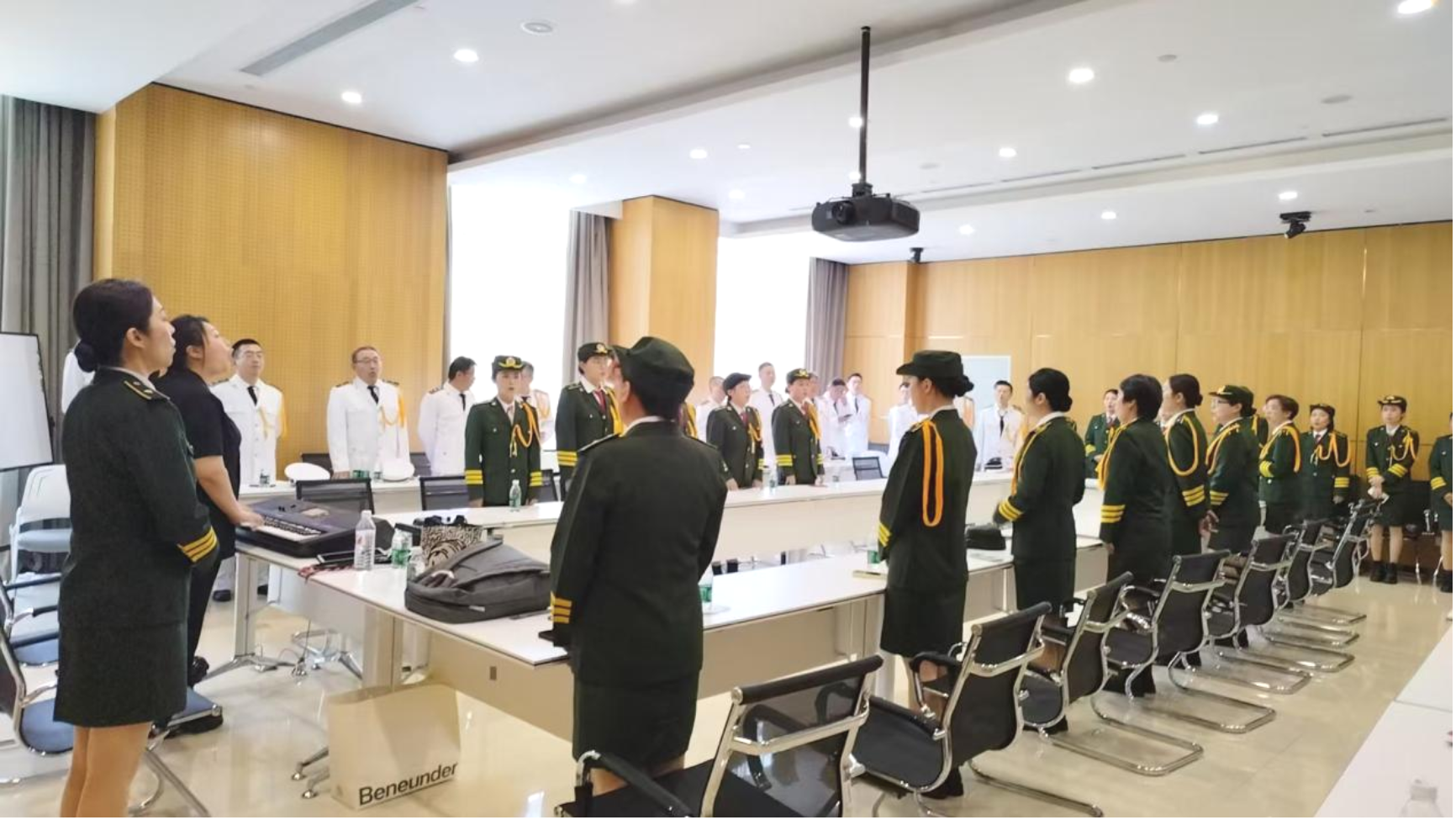 搜书吧 合唱团由60名教职工组成,参与率近100%。在这个属于全体劳动者的五月,以军礼戎装演绎经典红歌《我们走在大路上》,凭借恢宏气势与嘹亮歌声,荣膺赛事优秀奖,彰显新时代高校教师与祖国同频共振的奋进风貌。