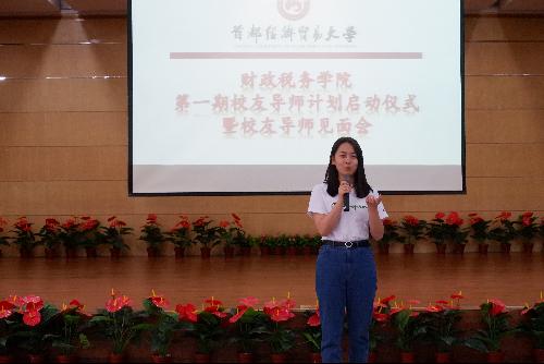 会上,2004级财政学(注册资产评估师)专业校友翟林、宗泠希作为校友导师代表发言。她们一致认为,校友导师计划是“双向”互赢,导师可以向学生分享自己的人生经验,而学生可以通过自己对新生事物的理解对导师的工作给予帮助;同时,也感谢学院能够搭建这么一个平台,在离校十年有余之际,不曾想过有一天与相差十几届的学弟学妹们会比相差一届的更熟识;她们强调每个人都是不同的,不要一味地模仿别人的成功之路;只要有想法,肯付出、珍惜好大学时光、把握好每一次机会,大家都会拥有出属于自己的蓝天。