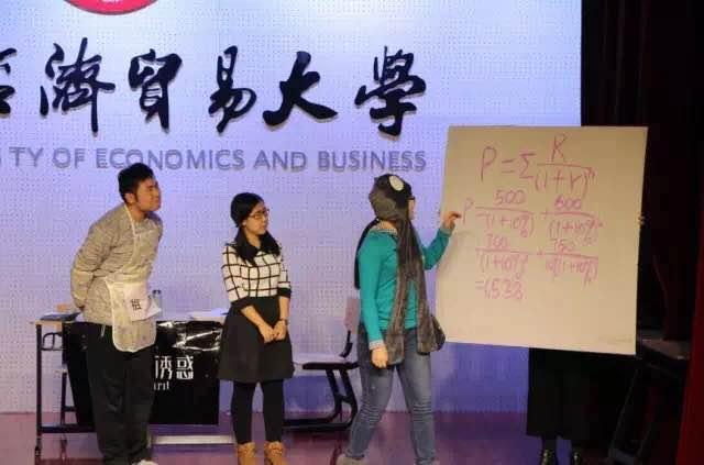 之后,闭幕式进入高潮,由13级资产评估普通班、国际班,12级资产评估班以及15级资产评估专硕的同学们带来了妙趣横生的小品。第一个上场的是13级资产评估普通班,类比火爆电影《夏洛特烦恼》而形成的《夏洛特有钱》,实实在在的展现了夏洛的经历,引用了两大凉茶品牌的商标之争,运用市场法和成本法等评估方法,博得全场观众的笑声。最后,张然女士对他们的小品做出点评。她认为同学们表演地十分到位,但也建议大家在市场法的运用上要加以注意。