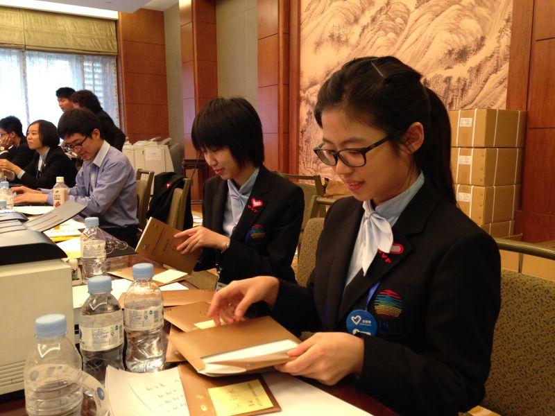 由于搜书吧 的专业特色,校团委本次面向搜书吧 定向招募了志愿者。在钓鱼台国宾馆主会场、财政部政策文件中心、威斯汀酒店前台注册接待、洲际酒店媒体服务中心、首都机场接待大厅、北京饭店、宋庆龄故居等场所均可见到我校面带微笑、衣着统一得体的财长会志愿者。他们用微笑服务,用耐心解答,用真诚交流,用热情招待每一位来宾,展现了首经贸学子的风采。