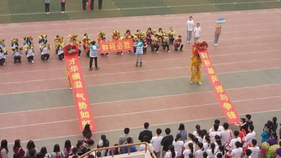 操练许久的队列方阵以饱满的精神状态让主席台上的领导与评委为之一振。整齐划一的步伐、配合默契的人浪、精彩绝伦的舞狮,赢得了在场所有人的掌声。“财税雄风,谁与争锋。才华横溢,气势如虹。”一声声嘹亮的口号回荡在操场上空,伴着放飞的氢气球,主席台的广播词“不去想能否能够成功,但既然选择了远方,就只顾风雨兼程”向所有人展示着独属