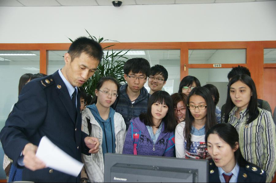 4月16日,搜书吧 2011级与2012级的部分同学和党总支副书记王珂老师前往北京市丰台区地方税务局第二税务所,与丰台地方税务局共同开展“便民办税春风行动之大学生纳税服务体验日”活动。丰台地方税务局副局长王冠凯,第二税务所所长周凯,副所长杨宝华,丰台地方税务局办公室主任王瑞海,副主任高健一同出席并参加活动。