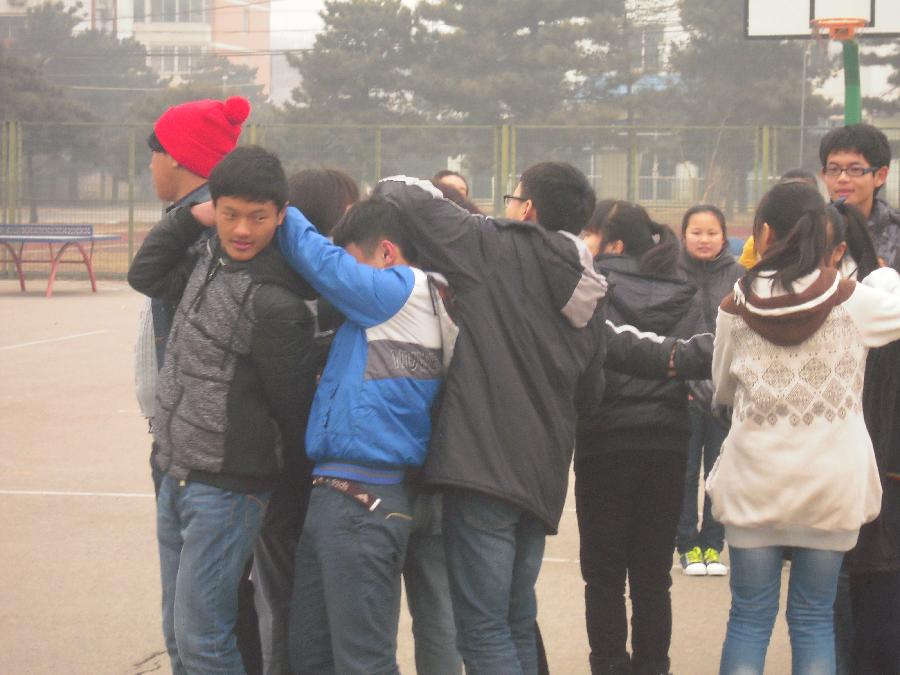 上午9点,北大附校的同学们在操场上集结,由主持人宣讲团成员杨圣明和管兆晗进行简单的开场白后,首先进入破冰游戏环节,游戏旨在调动同学们的积极性以及为后续正式宣讲做准备。经过分组,10组同学分成两组分别进行“解开千千结”游戏。同学们在临时选出的组长的带领下努力形成一个结,每组同学们虽然来自不同班级,但为了集体的荣誉都在努力着。“千千结”形成后,交换组长进行解结。有些组的“千千结”比较复杂,很费时间,但组长们都不放弃。游戏过后,同学们分组走进报告厅,宣讲团正式进行宣讲活动。