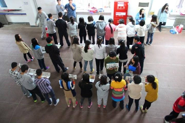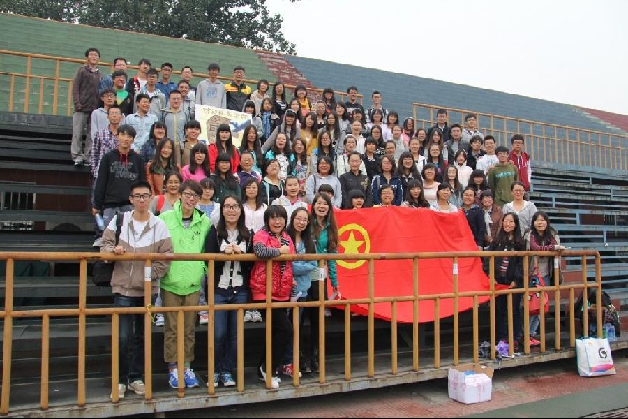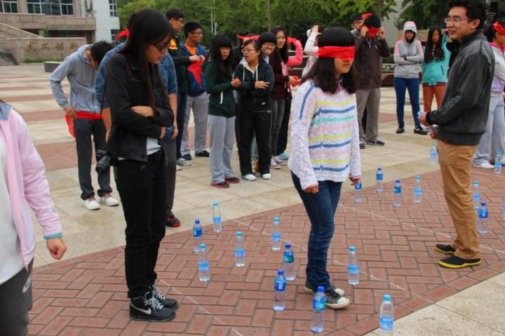 10月13日星期日下午,在校图书馆前的空地,搜书吧 举行2013-2014学年度的学生骨干素质拓展训练活动。学院分团委、学生会负责人及各部部长、干事、以及各班班长、团支书80余人参加了本次活动。分团委书记高敏丽老师和大家一起进行了拓展活动。