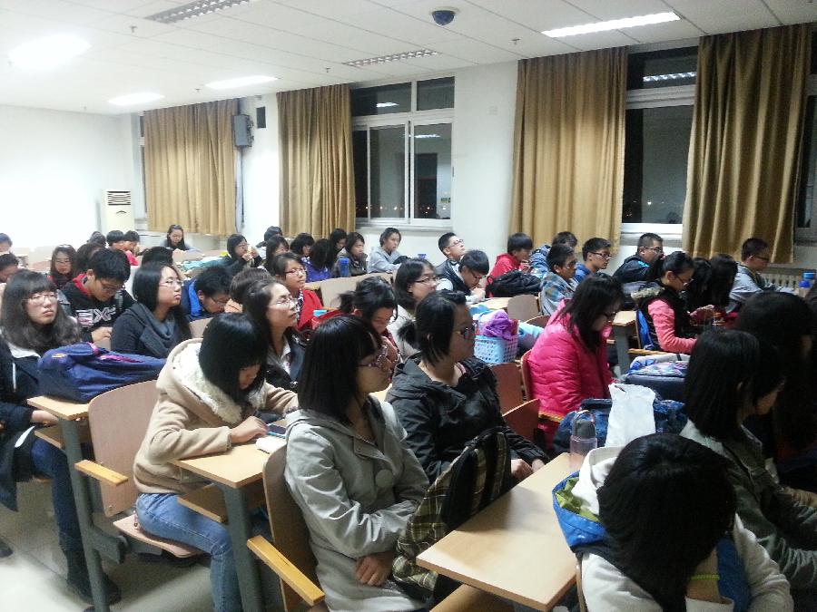之后,由周雪寒、闫晴同学向大家介绍日常志愿者的活动,并展示以往志愿者活动的照片,让每位2013级新志愿者都能了解到日常志愿活动的内容、时间、地点,在座各位新志愿者都对未来的志愿者活动充满了期待。随后,在互动环节中志愿者们进行情景训练,模拟现实志愿活动中可能发生的情况。场内气氛十分活跃,同学们都踊跃参与其中。