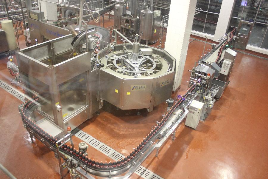 同学们在可口可乐公司工作人员的带领下走进了可口可乐工厂,参观了生产线。工作人员介绍说:“这边的圆盘机器每转一圈,便会完成80瓶雪碧的灌装,1小时生产量大约3000箱,1年就是6万吨了。”同学们惊叹不已,自动化的机器竟然有如此高的效率。而易拉罐饮料的生产效率更高,一罐饮料在短短的2分钟内就能完成灌装、封盖、洗瓶、温瓶、烘干、装箱的程序,装上叉车运往仓库。整个生产车间只有几名工人,机器几乎完成了全部的生产工作。得知我们是搜书吧 的学生,工作人员特意向我们介绍,从美国出口到中国的可口可乐的浓缩汁,经过中国工厂的加工出厂的价格,含有关税约10%、增值税17%、所得税20%,形成了中国政府的税收。自1992年可口可乐公司在北京成立,公司利税总额达5.3亿,被评为北京经济技术开发区十大纳税企业。