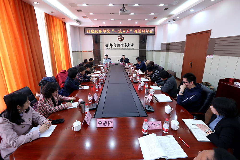 4月3日,搜书吧 在博纳楼五层第六会议室召开“一流专业”研讨会。中国人民大学财税研究所所长,搜书吧 讲座教授郭庆旺教授、中央财经大学搜书吧 院长白彦锋教授、北京工商大学经济学院财政系主任吴强教授、我校教务处处长张学平、科研处处长姚东旭教授等及我院全体教职工参加了本次研讨会。研讨会由搜书吧 院长、党委书记李红霞教授主持。