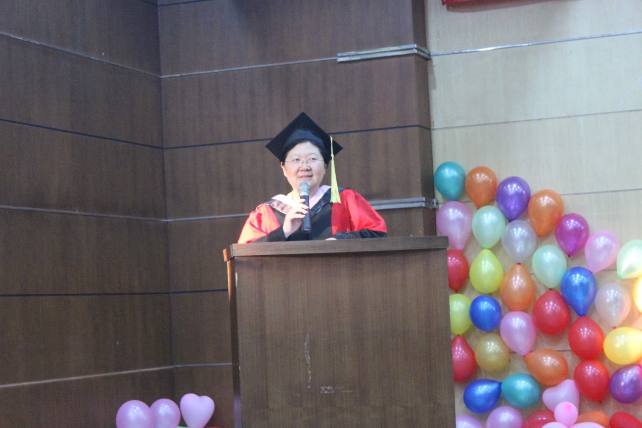 在学位授予仪式环节,搜书吧 院长李红霞教授首先代表全体在校师生致辞。她向即将走上新征程的各位同学表示衷心的祝贺,也向为同学们辛勤付出的老师与一直关心、支持同学们的家长表示感谢!李老师真诚地嘱托毕业生:一是要确定人生新的目标;二是要终身学习、勇于创新;三是要有感恩之心;四是要遵从良知、守住底线;五是要诚信友善的对待他人。最后,希望同学们常回家看看,祝亲爱的同学们一生平安,前程似锦!