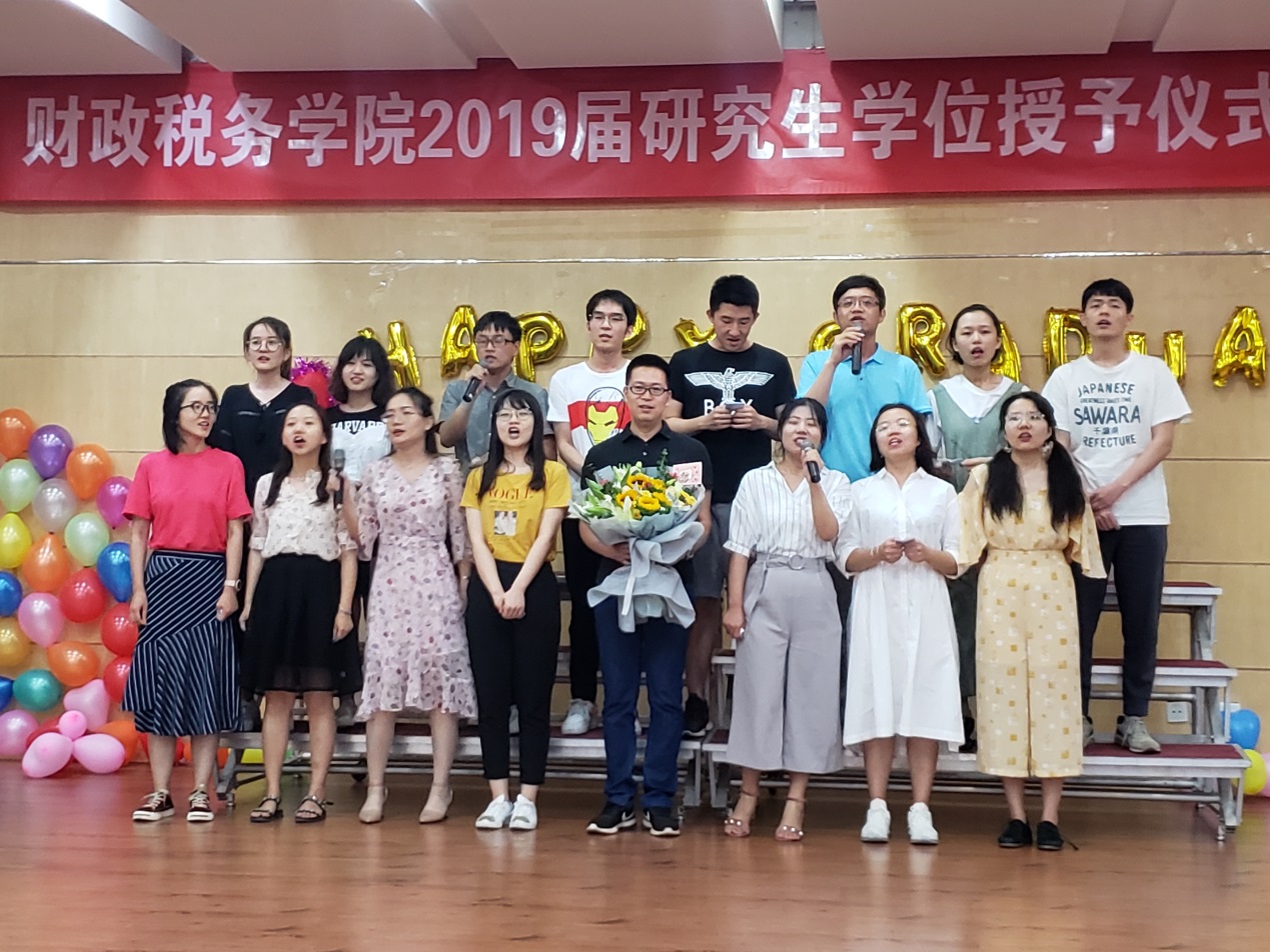 随后,在校生代表谢浩然代表全院在校师生发言,祝贺师兄师姐们即将踏上新的征程,开启人生新的篇章!感谢师兄师姐们在考研最艰难的时候,传授经验、加油打气——初入校园的时候,忙前忙后、答疑解惑;选课和开题焦头烂额的时候,思虑考量、指点迷津。无论师兄师姐走向何方,都将伴随母校和学院的真诚祝福,携带着恩师的殷殷期盼。请师哥师姐记得常回家看看,这里有尊敬的师长及挚爱你们的学弟学妹们。低眉处无奈流年似水,扬帆行有志风华如火。他衷心祝愿毕业的师哥师姐们能够带着财税人的才华和精神,早日实现属于自己的人生理想,前程似锦,扬帆远航!