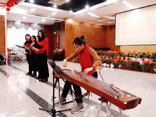 在青年教师才艺串烧板块,张亦然老师的古筝独奏旋律美妙,王子林、张亮、王婉如、茹玉等老师的诗歌朗诵《你好,辉煌的2020》情感充沛,为老师们带来诸多惊喜与憧憬。正如诗歌中所言:“站在新年的起跑线上,向着明天放飞心中的白鸽,以怒放鲜花的心绪,期待一场馨香芳菲的花期。”