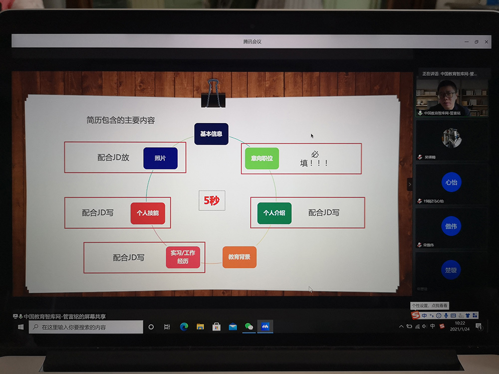 1月24日上午,搜书吧 线上举办贝壳成长营第二场讲座——让简历邀约来的更猛烈些吧!讲座由搜书吧 党委副书记刘玉梅主持,分团委书记吴瑛楠老师,辅导员贺加贝老师以及100余名同学参加了讲座。