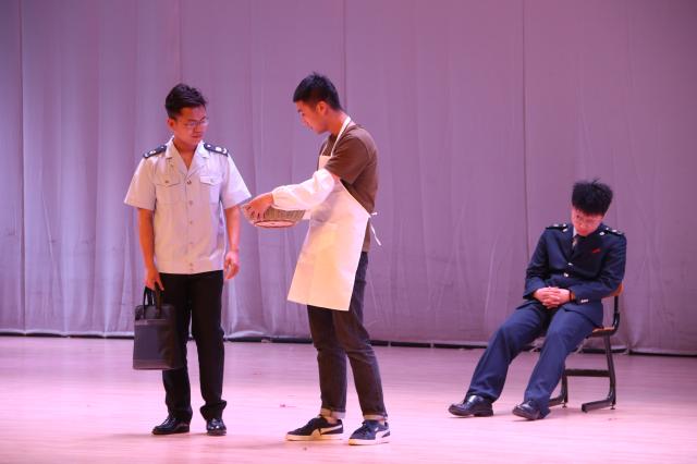 同时,来自朝阳区税务局的税务干部也为大家带来他们悉心排演的小品《火眼金睛辨合同》。取材于日常工作中关于国际税法的真实案例,再加上税务干部的生动演绎,他们仿佛把办税大厅搬到了舞台上。税务人火眼金睛,反避税人人有责,税务干部们为同学们上了生动的一课,也将现场氛围推至高潮。