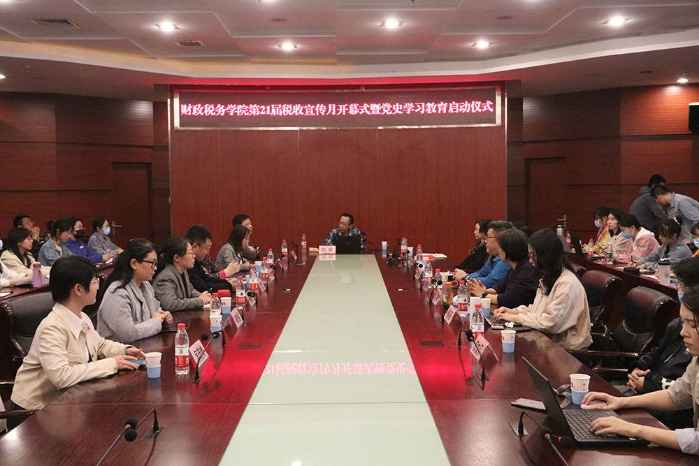 4月7日晚,搜书吧 第21届税收宣传月开幕式暨党史学习教育启动仪式在博纳楼第七会议室举行。在开幕式和启动仪式上,中国法学会财税法学研究会副会长刘佐教授做了题为《中共百年税收政策的变迁》主题讲座。搜书吧 党委副书记、院长李红霞等党政班子成员,教师和学生党支部书记,党员和师生代表共计140余人参加了本次活动。开幕式和启动仪式由学院党委副书记刘玉梅主持。