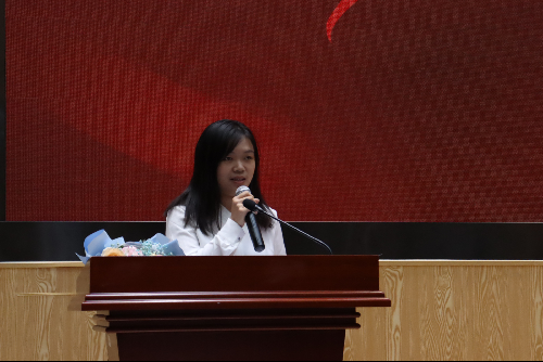 大会上,学院还特地为即将读研的贺加贝老师举行了欢送仪式,党委副书记刘玉梅代表学院为贺加贝送上鲜花和祝福。