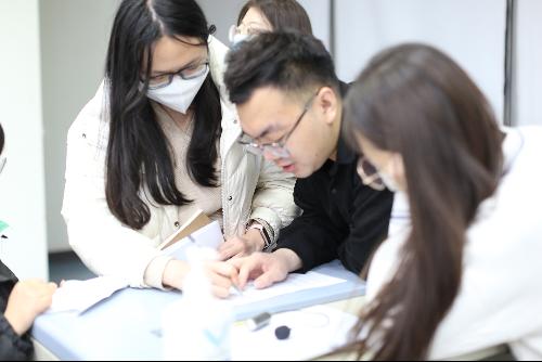 结束后的交流互动环节,刘唯贤在活动现场为多位同学的简历提供一对一的指导和修改,为同学们答疑解惑,帮助同学就简历优化提供建议。