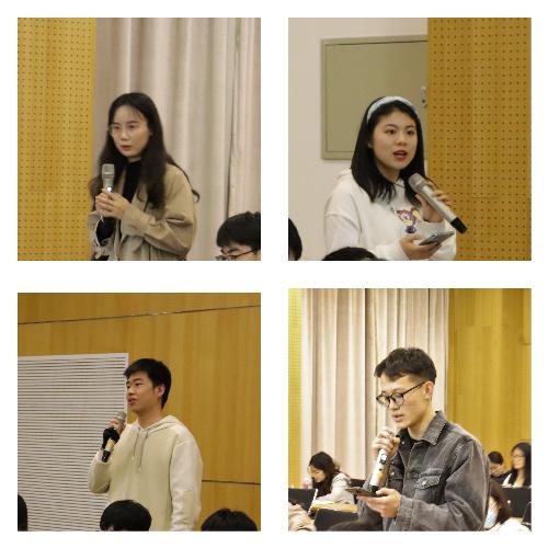 在提问环节,老师和同学们积极与刘佐教授互动交流,来自税收专业的曹思雍、李雪迪、姜莹和王志诚等同学分别针对人口老龄化、社会福利、政策有效性,中央地方税收收入分成等方面进行了提问,刘佐教授都耐心地进行了讲解。