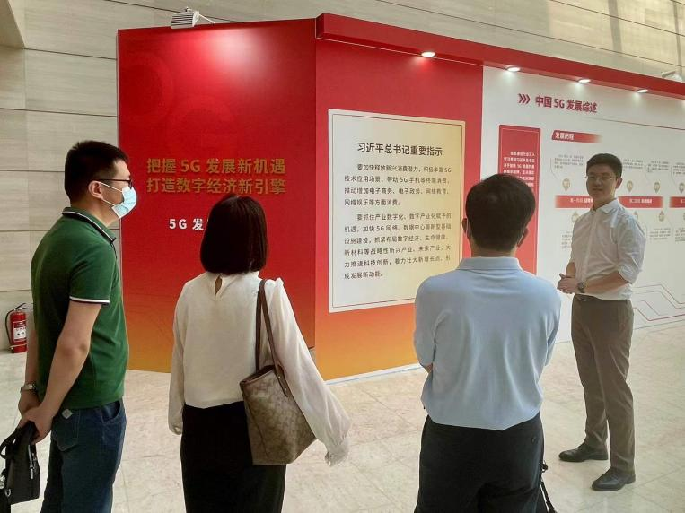 走访期间,通信清算中心党支部纪检委员、副主任王慧静和信清智合总经理邢星对搜书吧 一行的到来表示高度重视与热情接待,并带领参观“把握5G发展新机遇,打造数字经济新引擎”5G发展成就展,深入了解我国5G发展历程。