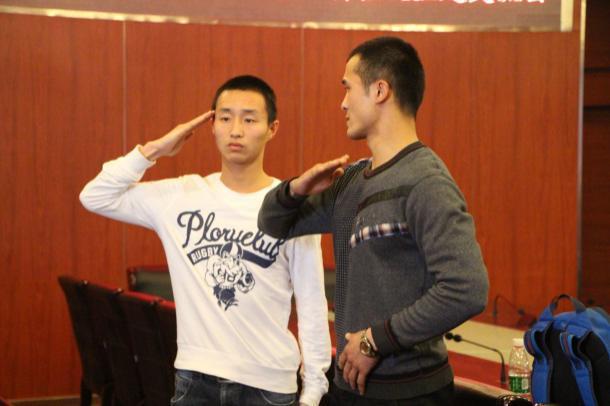 装工院学员们为参加“一二?九”的同学进行指导