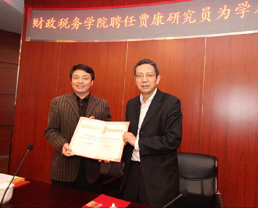 校长王稼琼为贾康研究员颁发聘任