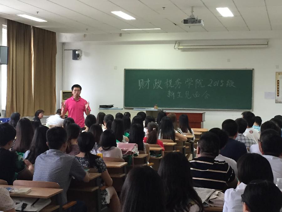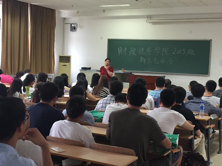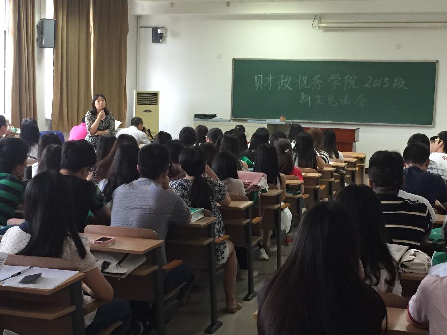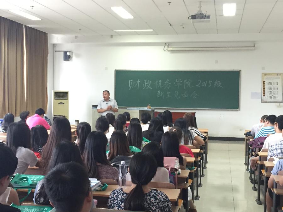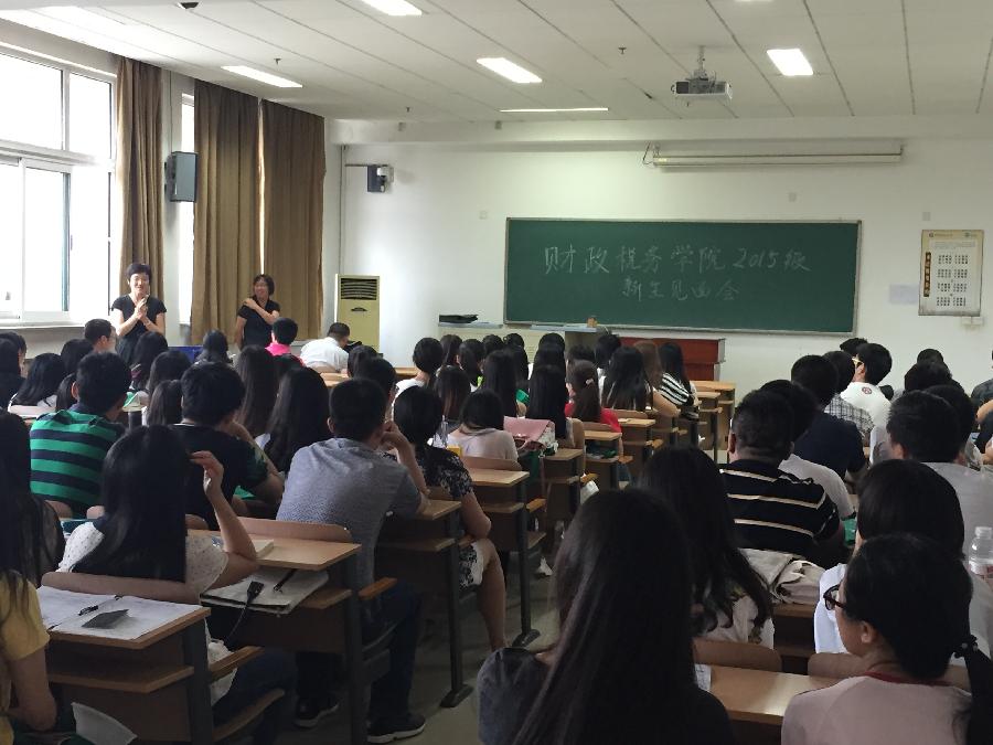 9月8日下午,搜书吧 为2015级硕士研究生举办新生见面会,院长姚东旭、党委书记李红霞、副院长王竞达、副院长何晴、党委副书记王珂、税务系主任何辉、财政系副主任张立彦均到场欢迎80名新生。