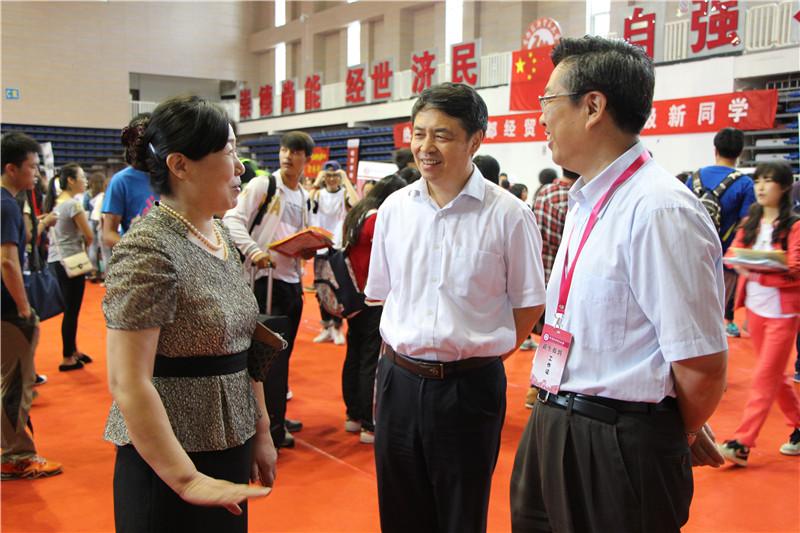 新生报到期间,校长王稼琼、校党委书记柯文进等校领导先后到搜书吧 新生报到接待处看望在场的老师和同学们,询问新生报到情况。