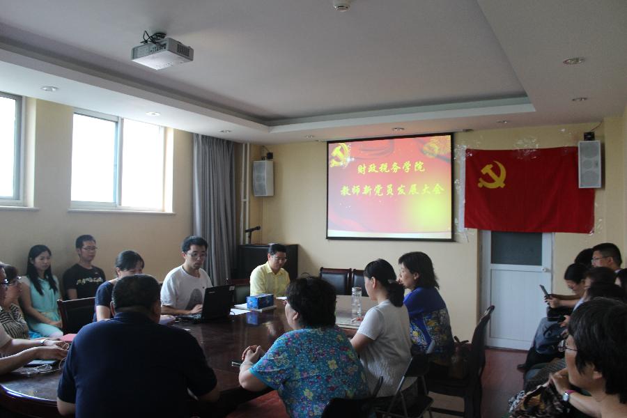 7月1日下午,在庆祝建党93周年这个特别值得纪念日子里,搜书吧 在明辨楼三层会议室召开教师新党员发展大会。大会讨论并接受财政系副主任张立彦同志入党申请。学院全体教师党员参加了大会,会议由党总支书记李红霞主持。