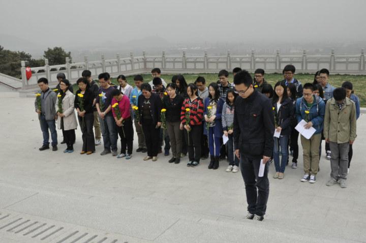 默哀结束后,由学生党员张旭东献词。张旭东同学在献词中强调了这些无名英雄们为祖国的统一大业做出的伟大的贡献,他们理应受到今人的缅怀和尊敬,他还提出如今的幸福生活是无数革命先烈们用鲜血和生命换来的,因此我们更应该珍惜眼前,勇于承担重任,居安思危,为早日实现中华民族的伟大复兴的中国梦贡献力量。