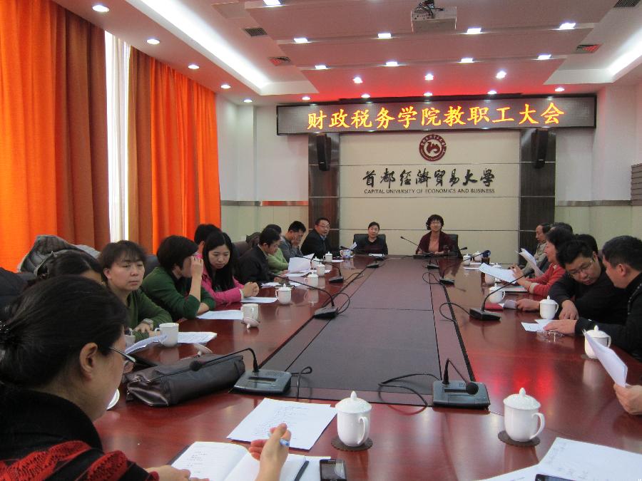 2013年1月15日,在博纳楼五层第六会议室,搜书吧 召开了第一届教职工大会。会议在庄严的国歌声中开幕,23名教职员工出席了本次会议。会议由学院分工会主席刘颖主持。