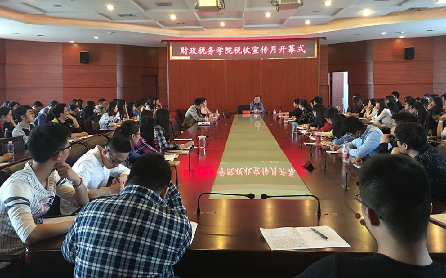 搜书吧 本届税收宣传月于48日开幕。此次开幕式邀请到中国人民大学财政金融学院学术委员会主任、我校校友朱青莅临讲学。