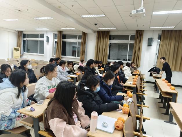 各班班主任向同学们提示了用电安全、假期安全等注意事项,并强调临近期末,同学们应认真复习,诚信应考,遵守考场纪律与学术诚信。本科2023级财政学类2班班主任唐火青为本班同学准备了橙子与苹果,祝福大家“橙“功取得好成绩,“苹”安度过假期。