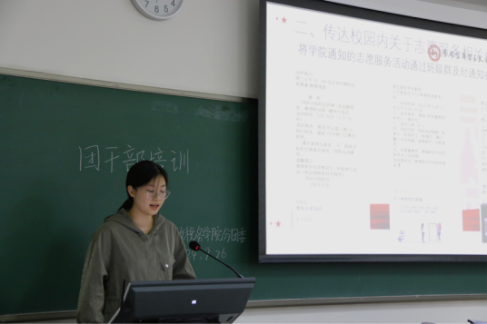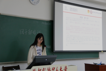 组织部副部长杨昱婕详细讲解了《团章》和我校发展团员流程等内容;组织部副部长仲维依介绍团组织相关信息,包括团组织的基本职能等;组织部部长于非仝介绍了团干部的相关信息,如团支书和组织委员的职责和校院班的组织架构等,同时讲解了共青团的日常教育活动,如三会两制一课等。