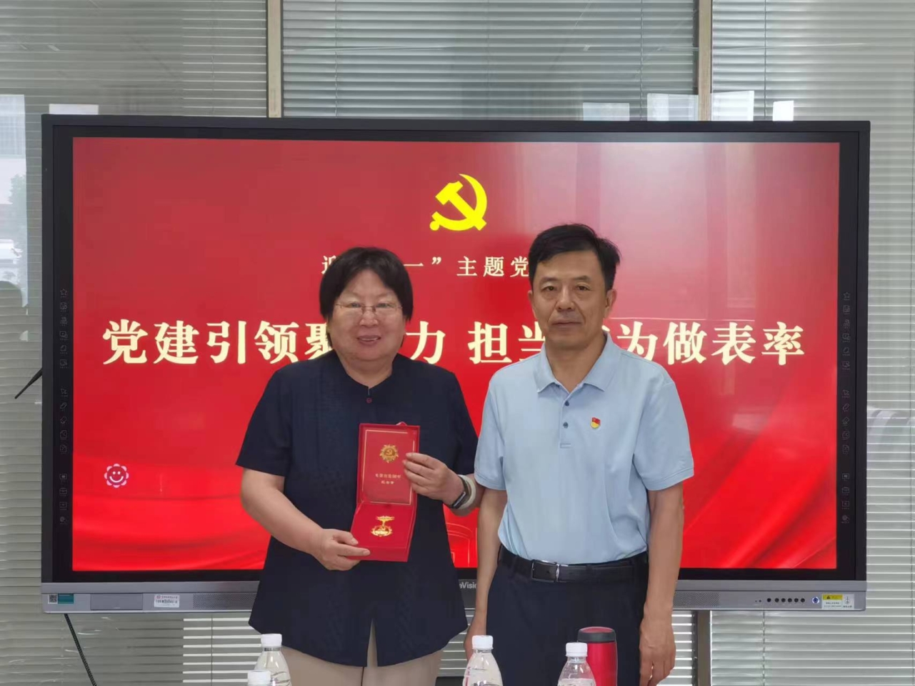 活动的第一个环节是搜书吧 2024年“光荣在党50年”纪念章颁发仪式,刘学伟为学院退休教师党员丁芸颁发奖章。五十载峥嵘岁月,五十载初心如磐。刘学伟代表学院党委向丁芸致以热烈的祝贺,向为学院发展做出突出贡献的老党员表达崇高的敬意,希望老党员一如既往地关注和支持学院事业发展。