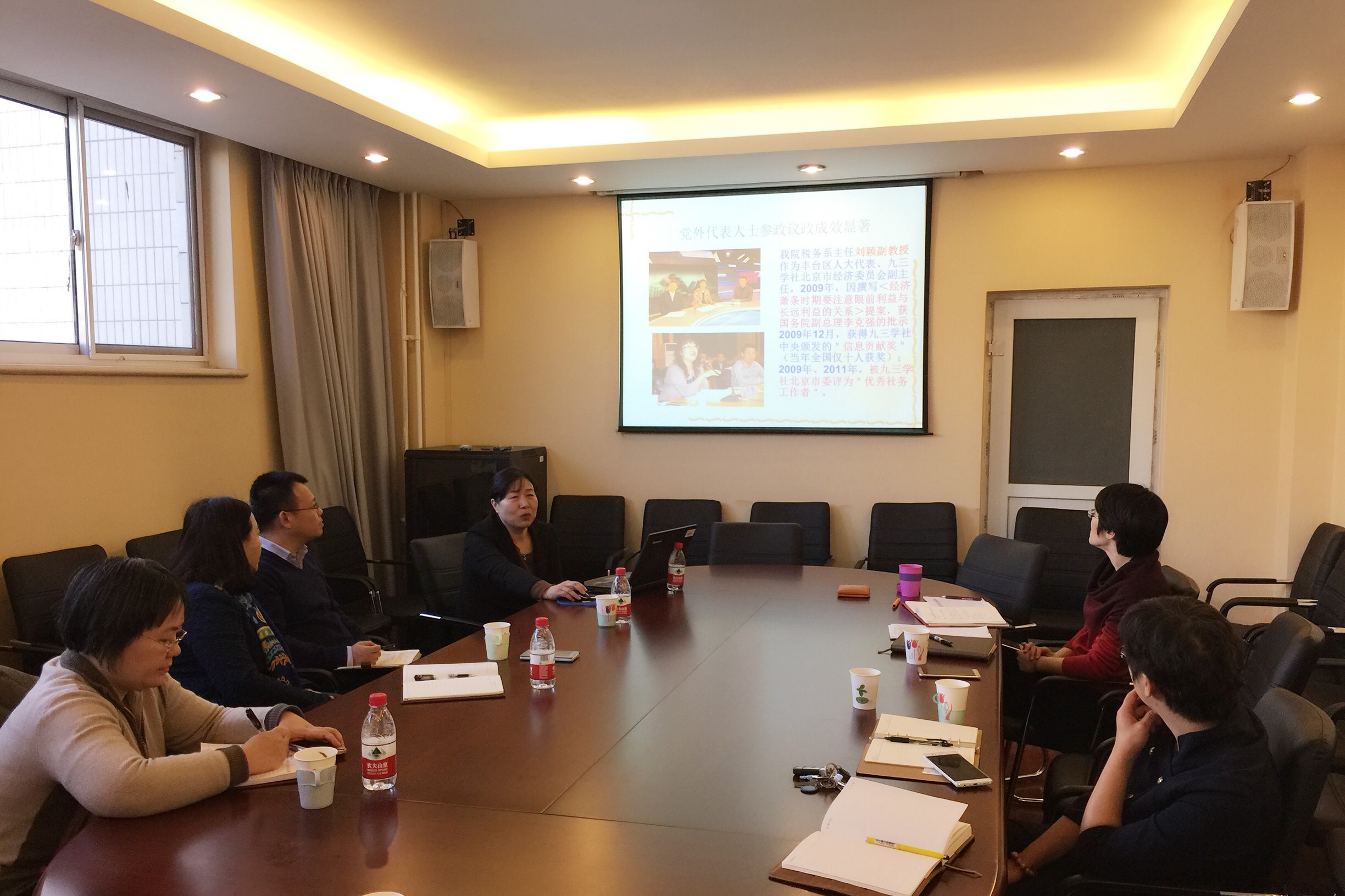 李红霞围绕学院宣传思想工作现状、工作做法及特色、建议措施等三个方面对学院宣传思想工作情况进行汇报。她提到,学院现有官方网站、人人网主页财税学税众箴品、微信平台贝才禾兑学财税之声等网络宣传新媒体,同时已打造一支高素质、能力强、分工明确、协作有序、机制健全的宣传队伍。李红霞还进一步针对新媒体、教师教风、少数民族学生等相关问题提出对思想政治工作的建议措施。