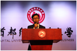北京市税协副会长、北京鑫税广通税务师事务所董事长王进代表北京市注册税务师协会发言。他讲到,税务师事务所及其从业人员不仅维护国家税收利益,还维护了纳税人的合法权益,彰显了税务师事务所和广大税务师在社会经济活动中的重要作用。演讲比赛就是非常生动活泼的税法宣传普及活动,鑫税广通还会配合学院部分专业课程需要进行税收实务及行业推介活动,让更多的财税学子了解税务师行业进而热爱上税务师职业,为税务师行业人才的引进拓宽渠道。随后,北京鑫税广通税务师事务所总经理郝卫东代表主办方发言。