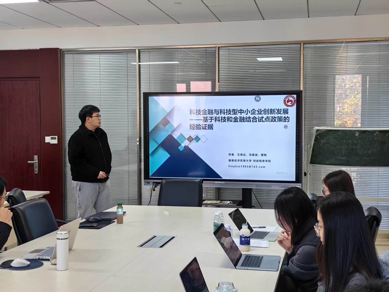 2025年11月13日,搜书吧 在博远楼419会议室成功举办第32期博士生学术沙龙。本期沙龙延续学院“严谨、务实、创新”的学术传统,搜书吧 2023级博士生马里斌、肖振先后围绕“科技金融赋能中小企业创新”与“财政纵向失衡影响公共服务均等化”两个专题展开汇报。搜书吧 教师孟源祎、马梦迪受邀担任点评嘉宾,学院多位博士生积极参与交流,现场学术氛围浓厚、互动热烈。