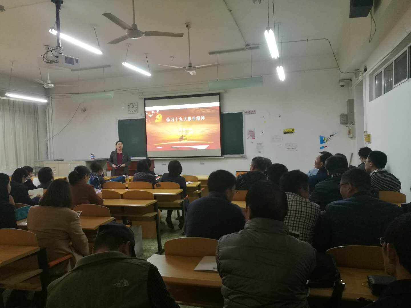 11月8日,财税学院党委在慎思楼120教室,组织全体教职工学习十九大报告精神,财税学院党委书记李红霞做学习十九大精神解读。学院全体教职工参加了本次学习。