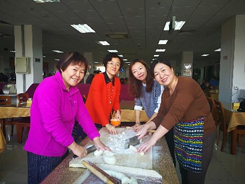 主页 » 搜书吧新闻 财税分工会举办2018年“庆新年包饺子”活动 发布日期:2018-01-08 2018年1月3日中午,为庆祝新年到来,丰富教职工生活,在分工会主席陈蕾、委员吴晖和张晓慧的组织下,财税分工会在教工食堂举办2018年“庆新年包饺子”活动。校工会常务副主席刘俊虹出席活动。全院教职工和退休教师30余名参加活动。 活动开始后,学院院长姚东旭、党委书记李红霞积极带头,老师们三五成群、自由组合,擀皮包陷、配合默契。包好的饺子整齐精美、各具家乡特色。经过一个半小时的努力,热腾腾的饺子出锅了!大家围坐在一起,品尝美味的劳动成果,互送真挚的新年祝福。现场既热闹又开心,可谓其乐融融。