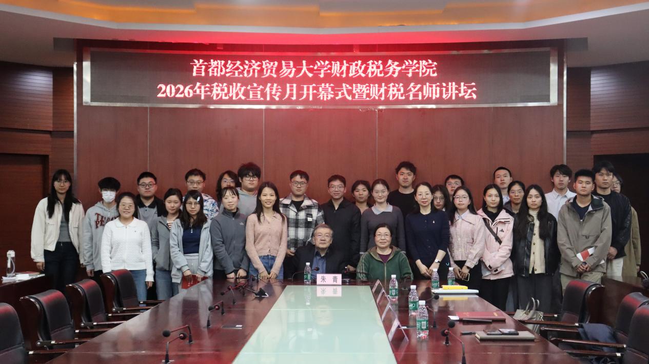 4月1日,搜书吧 税收宣传月开幕式暨财税名师讲坛在博纳楼五层第七会议室举行。本次讲座邀请学院杰出校友、中国人民大学朱青教授作题为“‘十五五’期间税制改革”的专题讲座。学院党委副书记张馨予主持活动。