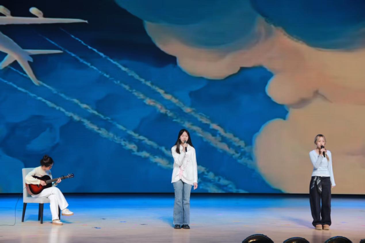 舞台上,一曲《心墙》缓缓流淌。吉他手指尖拨动琴弦,清新旋律如微风拂过;两位歌手声线交织,将“你的心有一道墙,但我发现一扇窗”轻轻诉说。一个人的伴奏,两个人的和声,默契配合仿佛推开彼此心墙。这份温暖恰如歌词所唱,愿为每个初来的你,打开一扇看见阳光的窗。