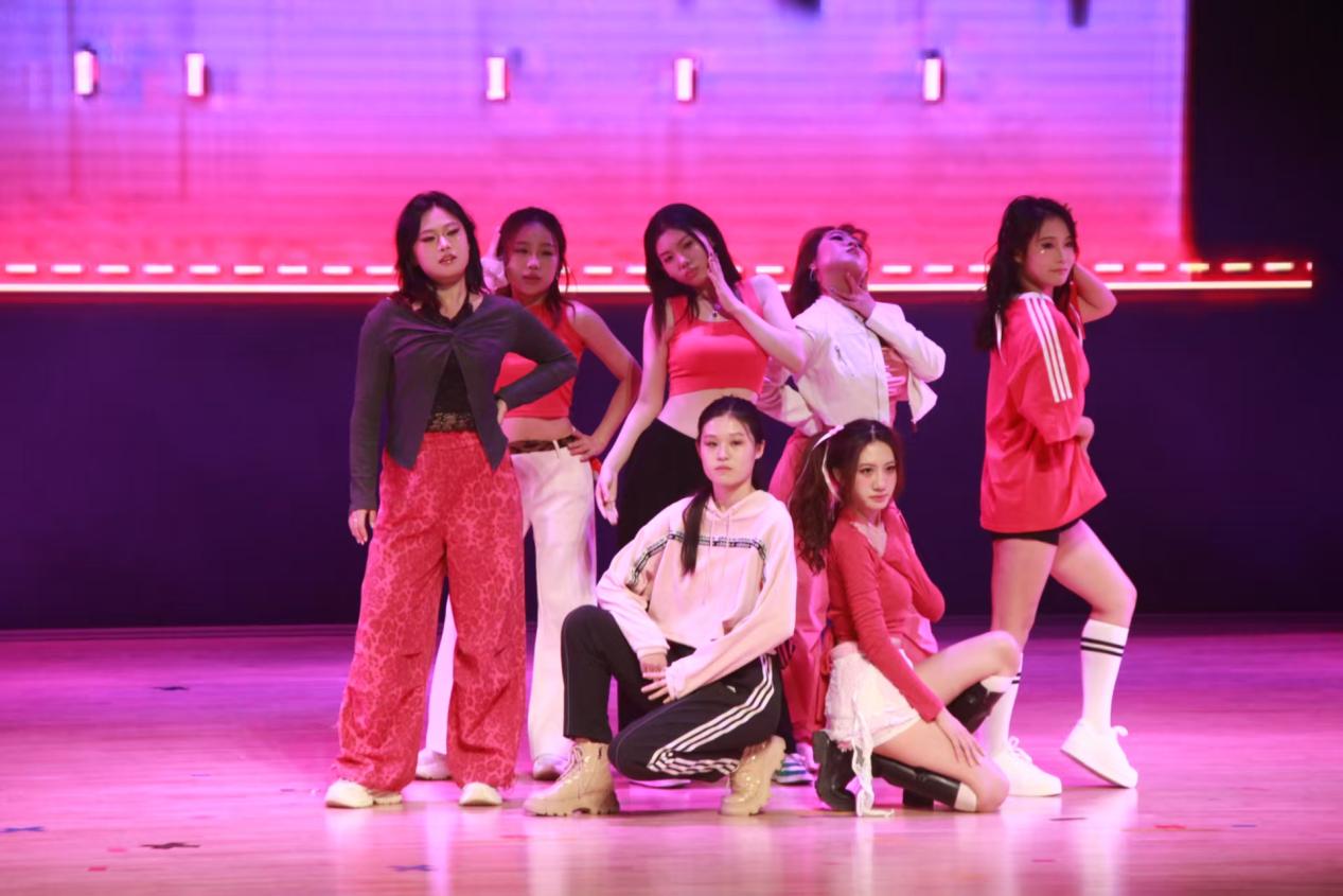 当熟悉的电子前奏响起,财税学子们用专属的元气气场重构了《D.R.I.P》的舞台!她们将“水滴”意象揉进 KPOP 标志性的利落框架里,爆发力十足的定点动作又带着少女独有的飒爽,连发丝的摆动都精准踩在节拍上,完美诠释了“甜酷交织”的舞台感。齐舞时的超强气场,让“Drip”不再只是动作的组合,更成了青春力量的传递。