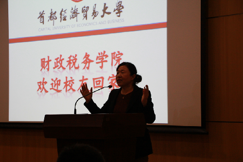 校友返校大会于9时30分伴着校歌《远航》开始。校长付志峰、校党委书记冯培先后发言,向校友们一直以来支持学校发展,情系母校的情怀表达了感谢,希望首经贸未来的发展能够得到校友们更多的帮助,之后校领导们纷纷上台,为校友联络员代表颁发联络员证书,财税学院83级校友联络员、税务系教师张春平代表财税学院校友联络员领取证书。