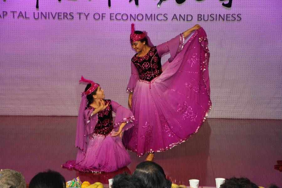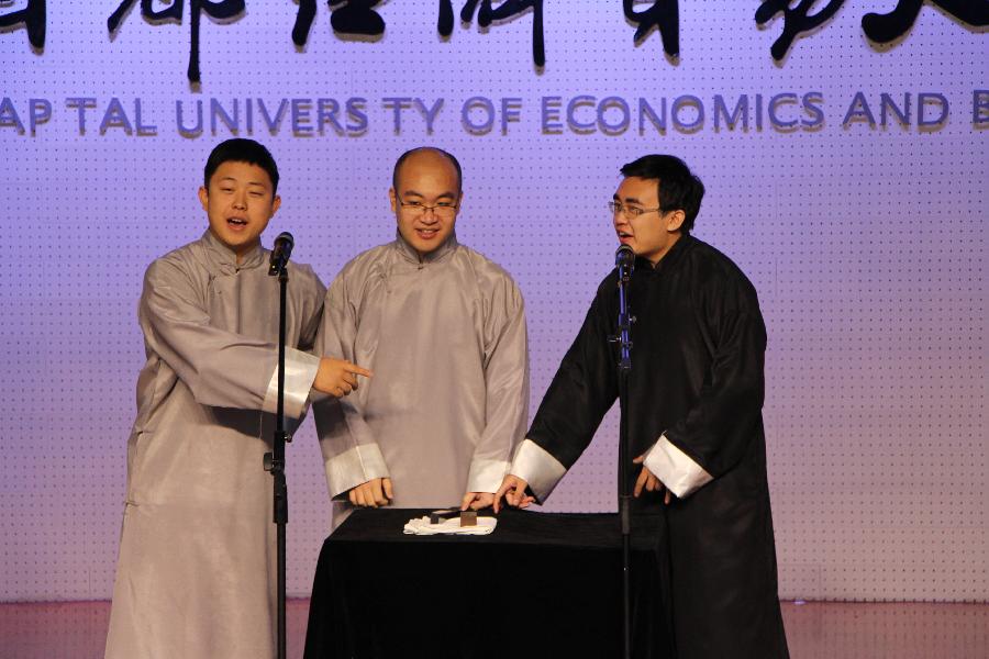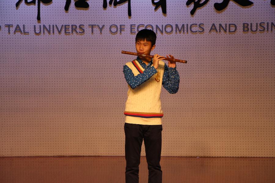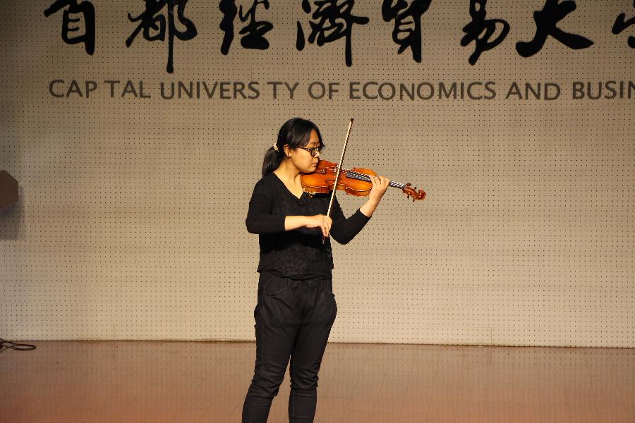 最后,在校学生们为莅临校友们献上了精彩的文艺节目表演。表演环节由14级本科生郭翰钊、文思洁主持,15级财政班伊帕热木和苏比努尔的新疆舞蹈热情优美、15级注税2班陈婉莹的小提琴独奏婉转悠扬、11级校友袁紫成和12级注资2班郑之琪带来的相声表演幽默诙谐、14级注资国际班袁博奕的横笛演奏明快动听、13级注税全面班葛海?h和13级注税卓越班王雅琦的歌曲串烧更是将大家带回了曾经的那段青葱岁月。