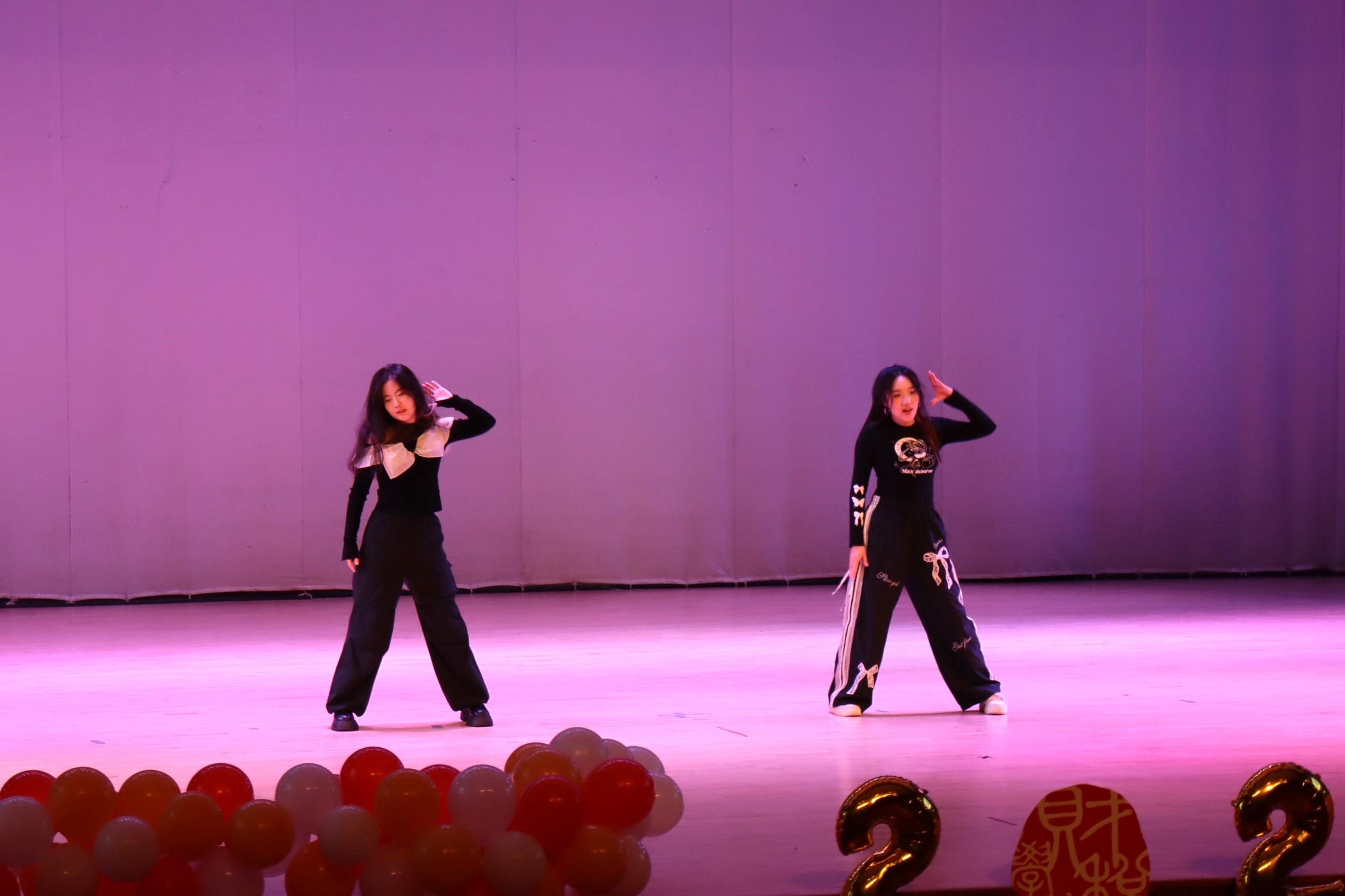 舞台上,两位舞者身姿矫健、舞步灵动。他们用充满力量与韵律的动作,将爵士舞的魅力展现无遗。快速的步伐变换、流畅的肢体扭动,尽显青春活力与激情。舞者间默契十足,每一个眼神、每一次配合都恰到好处。这场爵士双人舞不仅是表演,更是为新生们送上的活力贺礼,欢迎他们开启精彩校园生活。